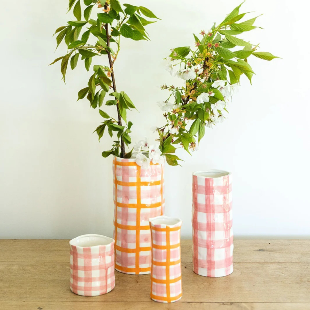 Small Pink + Red Gingham Vase